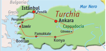 La Turchia è una nazione a cavallo tra l’Europa Orientale e l’Asia Occidentale, le cui radici culturali affondano nell’Antica Grecia, nella Persia e negli Imperi romano, bizantino e ottomano. La cosmopolita Istanbul, sullo stretto del Bosforo, ospita l’emblematica Santa Sofia, con la cupola monumentale e i mosaici cristiani, l’imponente Moschea Blu del XVII secolo e il palazzo Topkapi del 1460 circa, un tempo residenza dei sultani. La moderna capitale della Turchia è Ankara.